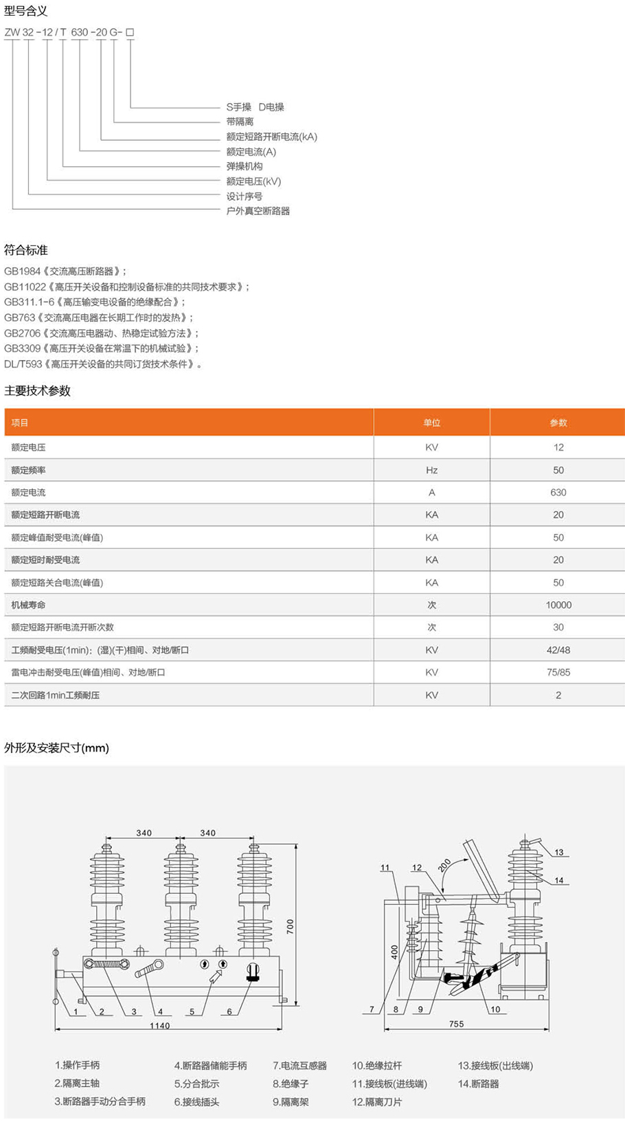 ZW32-12型盧外真空斷路器(以下簡稱斷跑器)為額定電壓12kV,三相交流50Hz的戶外配電設備。主要用于開斷,關合電力系統中的負荷電流、過載電流及短路電流。適用于變電站及工礦企業配電系統中作保護和控制之用,及農村電網頻繁操作的場所。本斷路器具有體積小、重量輕、防疑露、免維護等特點,能適立較惡劣的氣候條件和污穢環境。