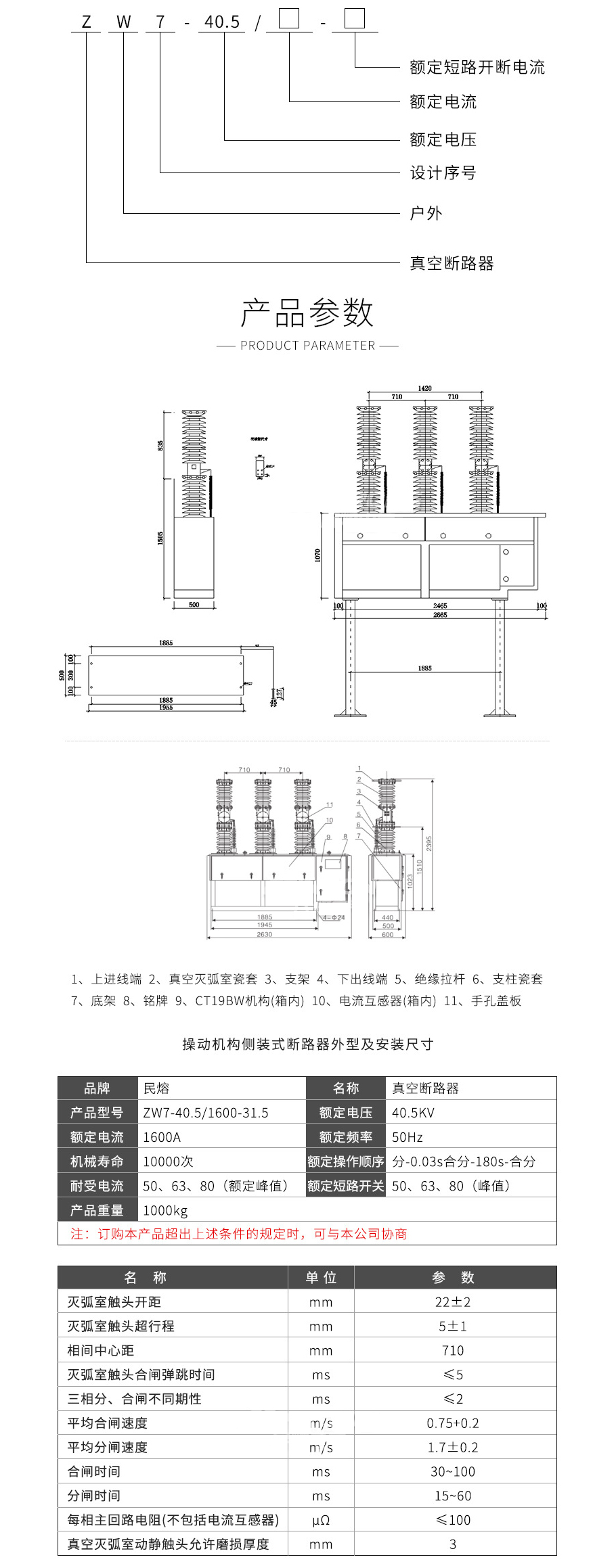 ZW7-40.5KV真空斷路器(不銹鋼外殼)