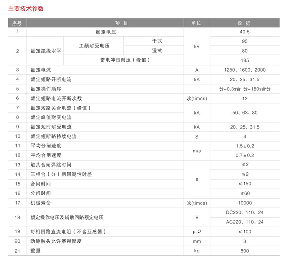 a. 采用真空滅弧,開斷能力強,電壽命長,機械壽命000次;