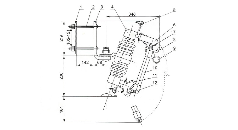 跌落式熔斷器在正常運(yùn)行時(shí),熔絲管借助熔絲張緊后形成閉合位置。當(dāng)系統(tǒng)發(fā)生故障時(shí),故障電流時(shí)熔絲迅速熔斷,并形成電弧,消弧管受電弧灼熱,分解出大量的氣體,使館內(nèi)形成很高壓力,并沿管道形成縱吹,電弧被迅速拉長(zhǎng)而熄滅。熔絲熔斷后,下部動(dòng)觸頭失去張力二下翻,鎖緊機(jī)械,釋放熔絲管,熔絲管跌落,形成明顯的開(kāi)斷位置。當(dāng)需要拉負(fù)荷時(shí),用絕緣桿拉開(kāi)動(dòng)觸頭,此時(shí)主動(dòng)、靜動(dòng)觸頭仍然接觸,繼續(xù)用絕緣桿拉動(dòng)觸頭,輔助觸頭也分離,在輔助觸頭之間產(chǎn)生電弧,電弧在滅罩狹縫中被拉長(zhǎng),同時(shí)滅弧罩產(chǎn)生氣體,在電流過(guò)零時(shí),將電弧熄滅。