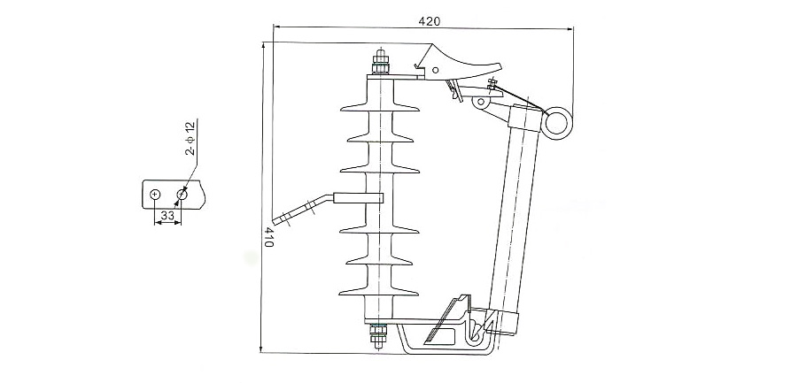 熔斷器是由基座和消弧裝置兩大部分組成,滅弧管下端裝有可能轉(zhuǎn)動(dòng)的彈簧支架,始終使熔絲處于緊張狀態(tài),以保證滅弧管在合閘位置的自鎖,線路與變壓器過(guò)載或短路中,熔絲熔斷,熔絲迅速?gòu)臏缁」苤谐槌觯瑴缁」茉O(shè)計(jì)為逐級(jí)排氣式解決在同一熔斷器上開(kāi)斷大小電流的矛盾。